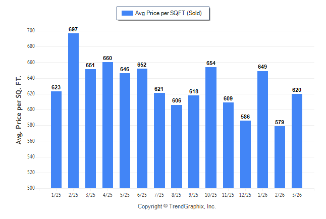 March 2026 Average Sold Price per Square Footage was Neutral**
