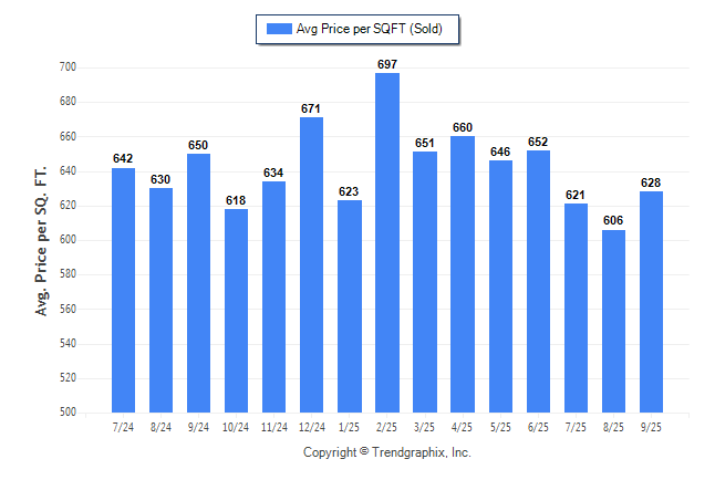September 2025 Average Sold Price per Square Footage was Neutral**