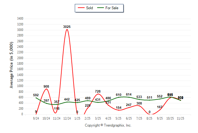 November 2025 Average For Sale Price was Neutral and Average Sold Price was Neutral**