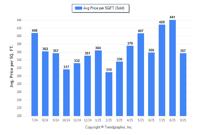 September 2025 Average Sold Price per Square Footage was Neutral**