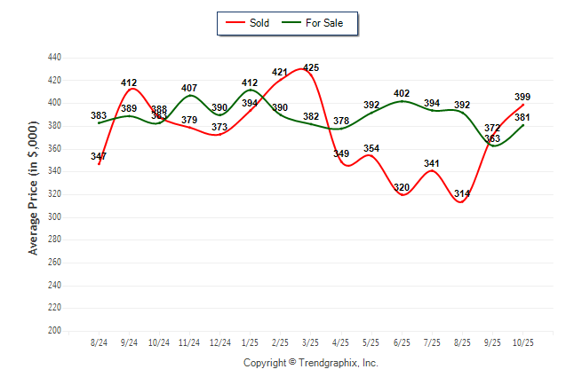 October 2025 Average For Sale Price was Neutral and Average Sold Price was Appreciating**
