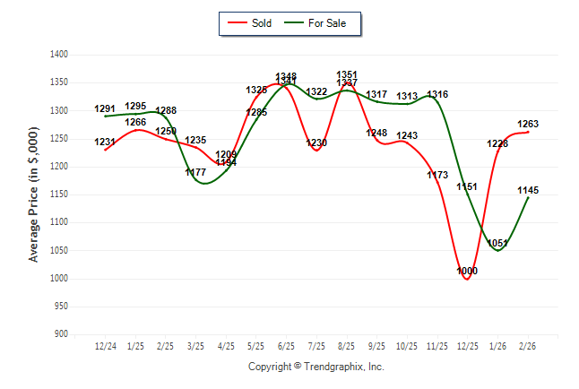 February 2026 Average For Sale Price was Neutral and Average Sold Price was Neutral**