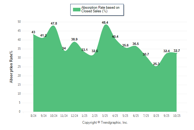 Curnt vs. Same Month 1 Yr Ago: Absorption Rate (Closed Sales) %