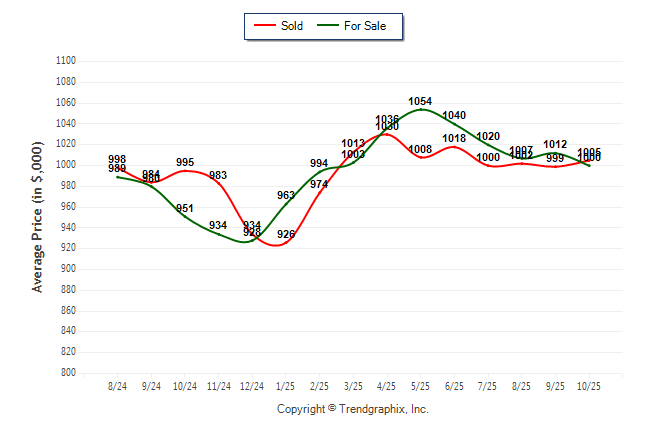 October 2025 Average For Sale Price was Depreciating and Average Sold Price was Neutral**