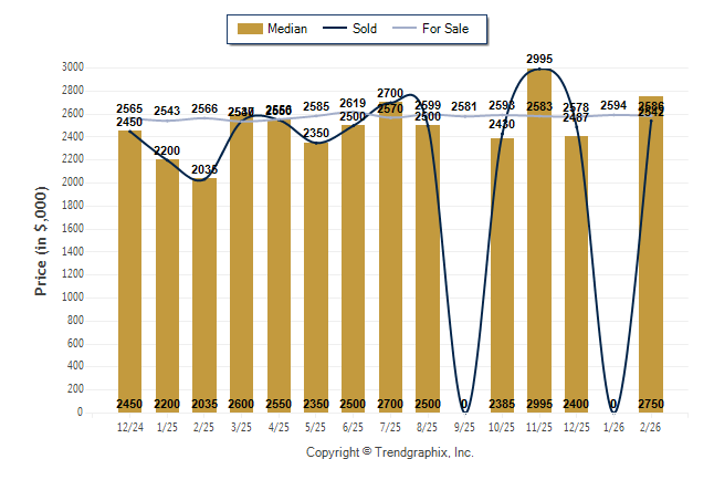 February 2026 Median Price was Appreciating, Avg. For Sale Price was Neutral, and Avg. Sold Price was Neutral**