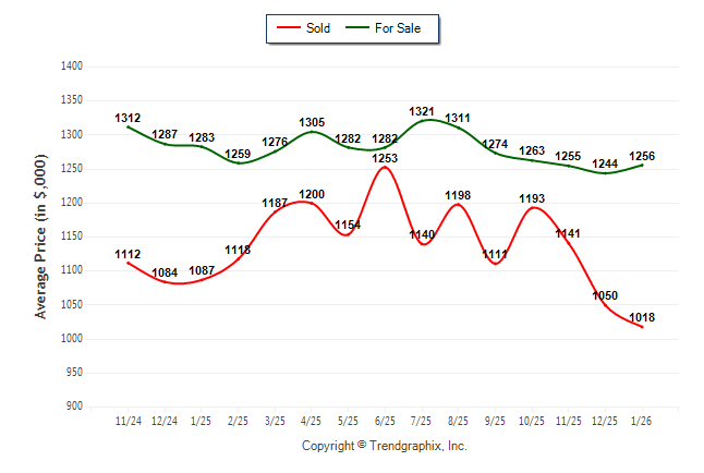 January 2026 Average For Sale Price was Neutral and Average Sold Price was Depreciating**