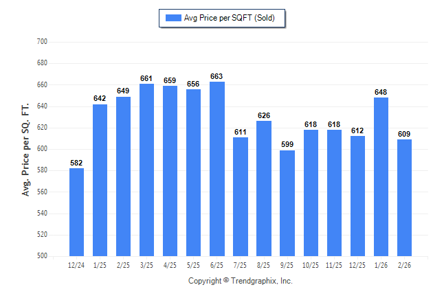 February 2026 Average Sold Price per Square Footage was Neutral**