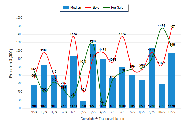 November 2025 Median Price was Neutral, Avg. For Sale Price was Neutral, and Avg. Sold Price was Appreciating**