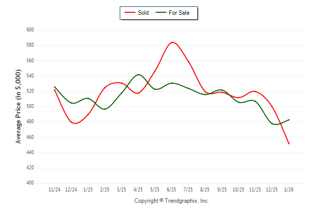 January 2026 Average For Sale Price was Neutral and Average Sold Price was Depreciating**