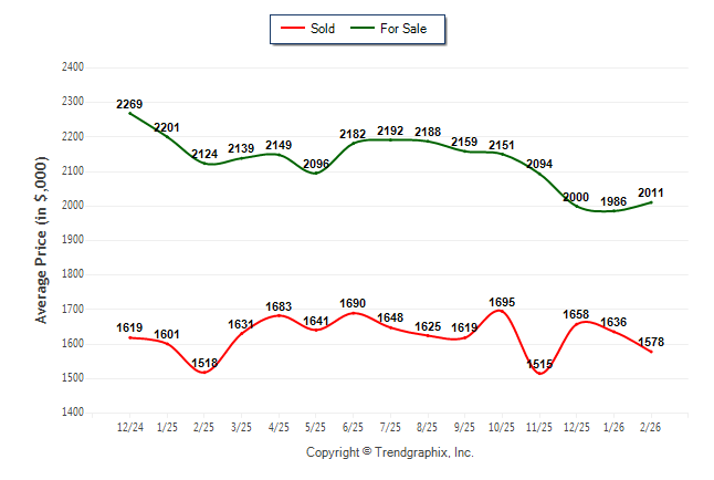 February 2026 Average For Sale Price was Neutral and Average Sold Price was Neutral**