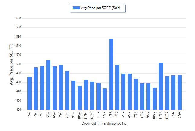February 2026 Average Sold Price per Square Footage was Appreciating**