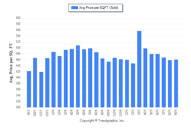 September 2025 Average Sold Price per Square Footage was Neutral**