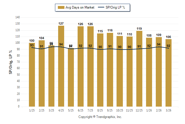 March 2026 Average Days on Market trend was Falling and Sold/Original List Price Ratio Remains Steady**