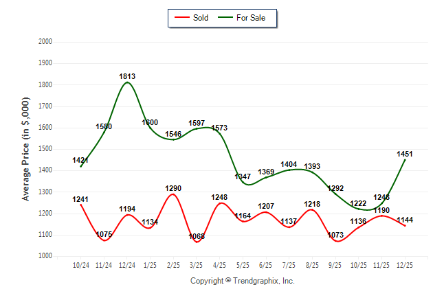 December 2025 Average For Sale Price was Neutral and Average Sold Price was Neutral**