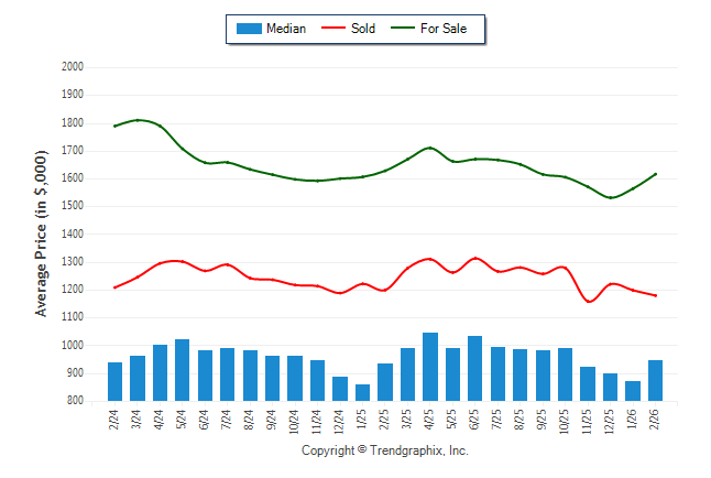 February 2026 Median Price was Neutral, Avg. For Sale Price was Neutral, and Avg. Sold Price was Depreciating**