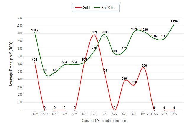 January 2026 Average For Sale Price was Appreciating and Average Sold Price was Depreciating**
