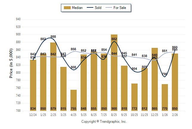 February 2026 Median Price was Neutral, Avg. For Sale Price was Appreciating, and Avg. Sold Price was Appreciating**