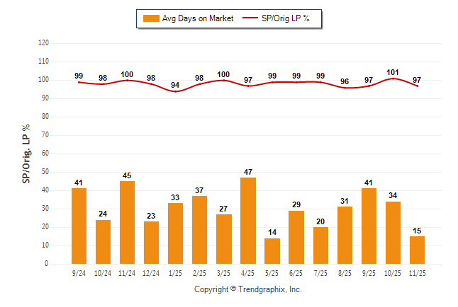 November 2025 Average Days on Market trend was Falling and Sold/Original List Price Ratio Remains Steady**