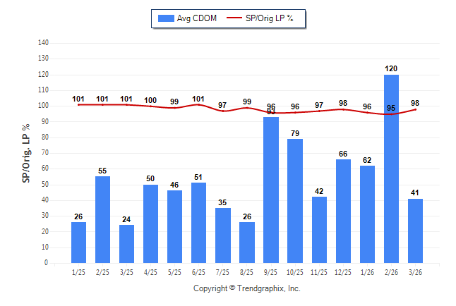 March 2026 Average Continuous Days on Market trend Remains Steady and Sold/Original List Price Ratio Remains Steady**
