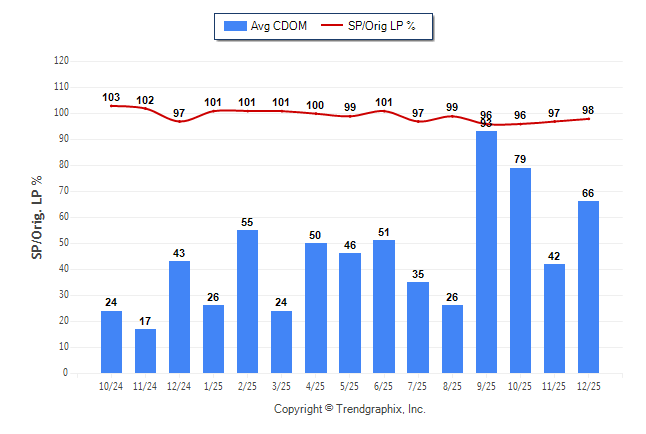December 2025 Average Continuous Days on Market trend Remains Steady and Sold/Original List Price Ratio Remains Steady**