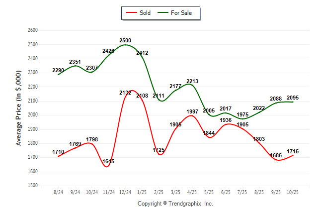 October 2025 Average For Sale Price was Appreciating and Average Sold Price was Neutral**