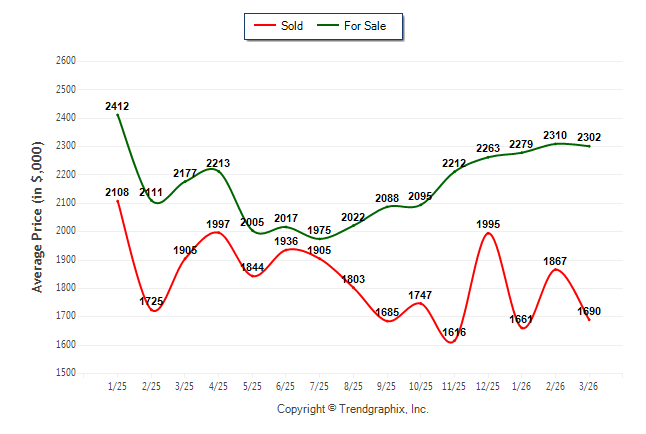 March 2026 Average For Sale Price was Neutral and Average Sold Price was Neutral**