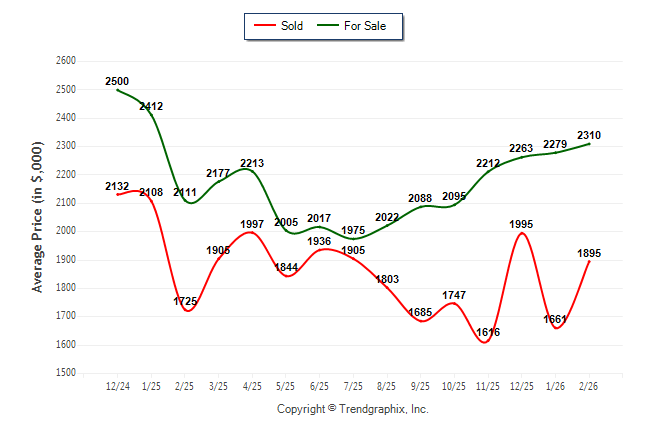 February 2026 Average For Sale Price was Appreciating and Average Sold Price was Neutral**