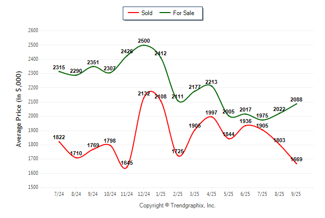 September 2025 Average For Sale Price was Neutral and Average Sold Price was Depreciating**