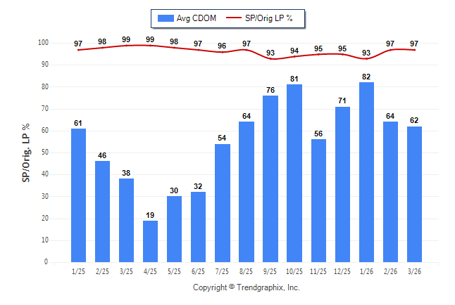 March 2026 Average Continuous Days on Market trend was Falling and Sold/Original List Price Ratio was Rising**