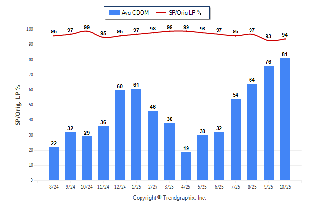 October 2025 Average Continuous Days on Market trend was Rising and Sold/Original List Price Ratio Remains Steady**