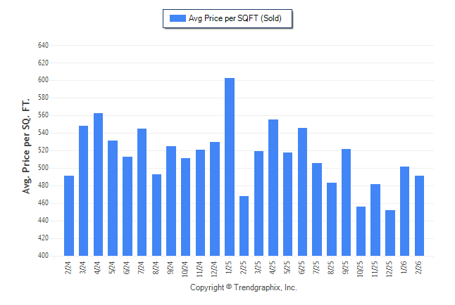 February 2026 Average Sold Price per Square Footage was Neutral**