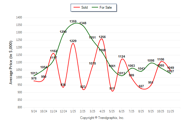 November 2025 Average For Sale Price was Neutral and Average Sold Price was Neutral**