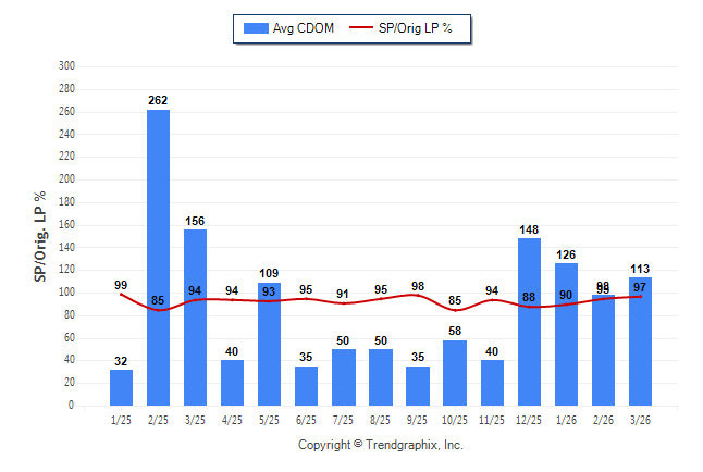 March 2026 Average Continuous Days on Market trend Remains Steady and Sold/Original List Price Ratio was Rising**
