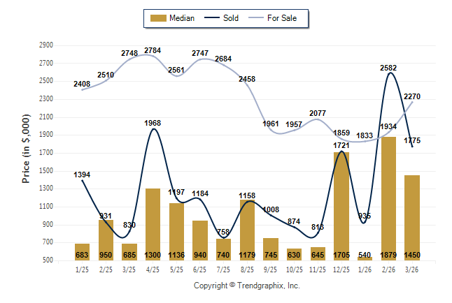 March 2026 Median Price was Neutral, Avg. For Sale Price was Appreciating, and Avg. Sold Price was Neutral**