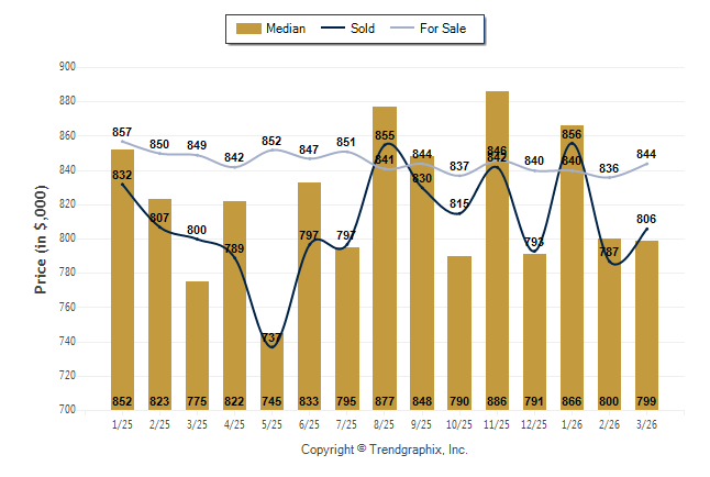 March 2026 Median Price was Depreciating, Avg. For Sale Price was Neutral, and Avg. Sold Price was Neutral**
