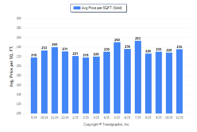 November 2025 Average Sold Price per Square Footage was Neutral**