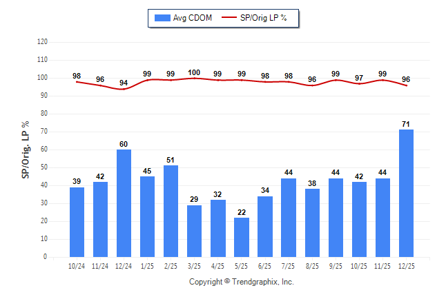 December 2025 Average Continuous Days on Market trend was Rising and Sold/Original List Price Ratio was Falling**
