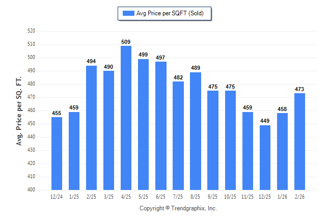 February 2026 Average Sold Price per Square Footage was Neutral**