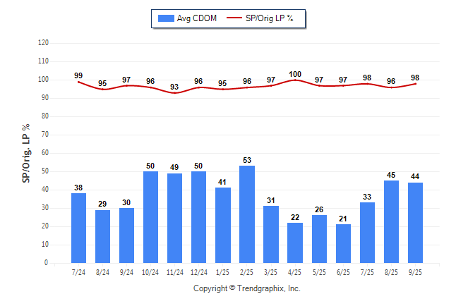 September 2025 Average Continuous Days on Market trend Remains Steady and Sold/Original List Price Ratio Remains Steady**