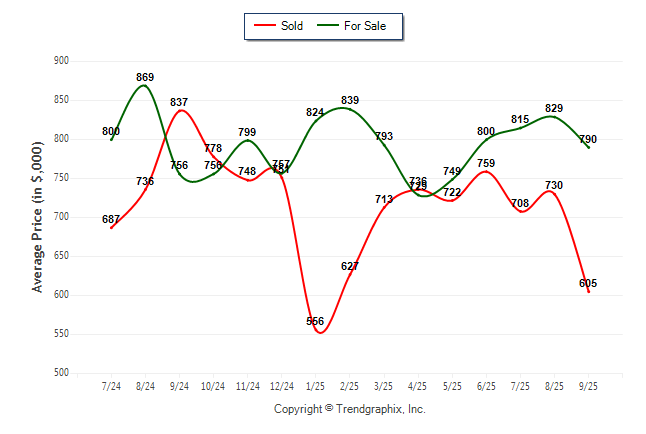 September 2025 Average For Sale Price was Neutral and Average Sold Price was Depreciating**