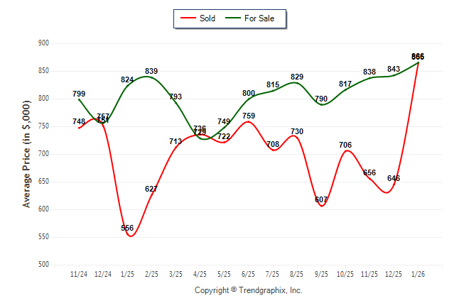 January 2026 Average For Sale Price was Appreciating and Average Sold Price was Appreciating**