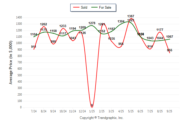 September 2025 Average For Sale Price was Neutral and Average Sold Price was Depreciating**
