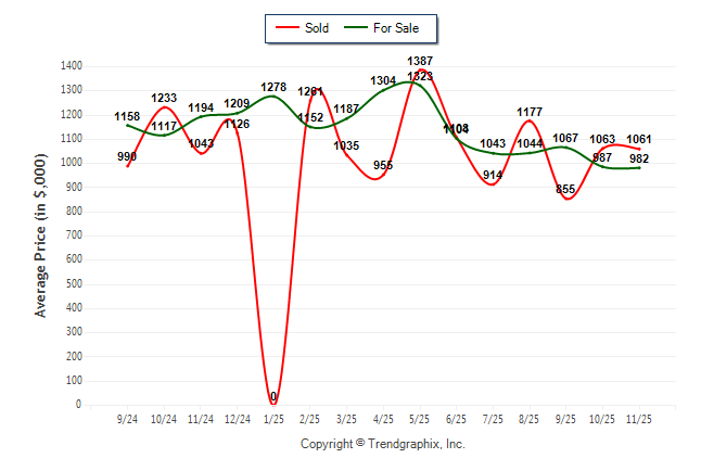 November 2025 Average For Sale Price was Depreciating and Average Sold Price was Neutral**