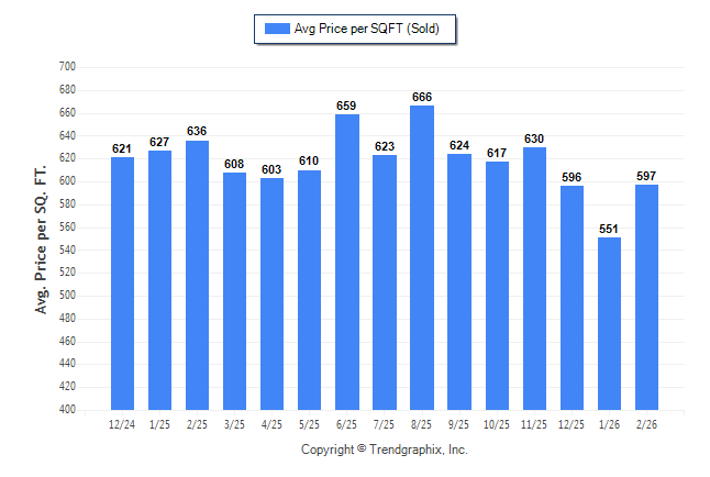 February 2026 Average Sold Price per Square Footage was Neutral**
