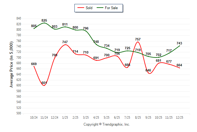 December 2025 Average For Sale Price was Appreciating and Average Sold Price was Depreciating**