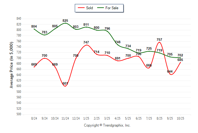 October 2025 Average For Sale Price was Depreciating and Average Sold Price was Neutral**