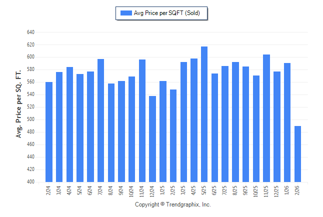 February 2026 Average Sold Price per Square Footage was Depreciating**