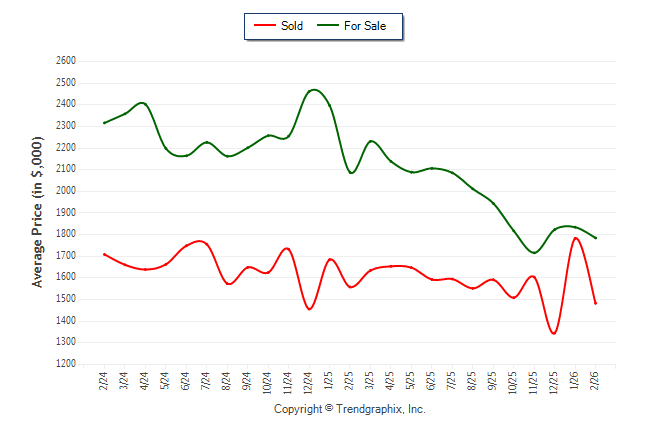 February 2026 Average For Sale Price was Depreciating and Average Sold Price was Neutral**