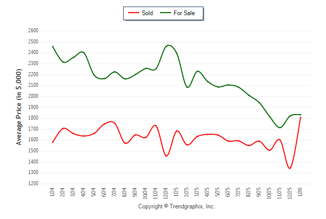 January 2026 Average For Sale Price was Neutral and Average Sold Price was Appreciating**