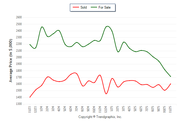 November 2025 Average For Sale Price was Depreciating and Average Sold Price was Neutral**